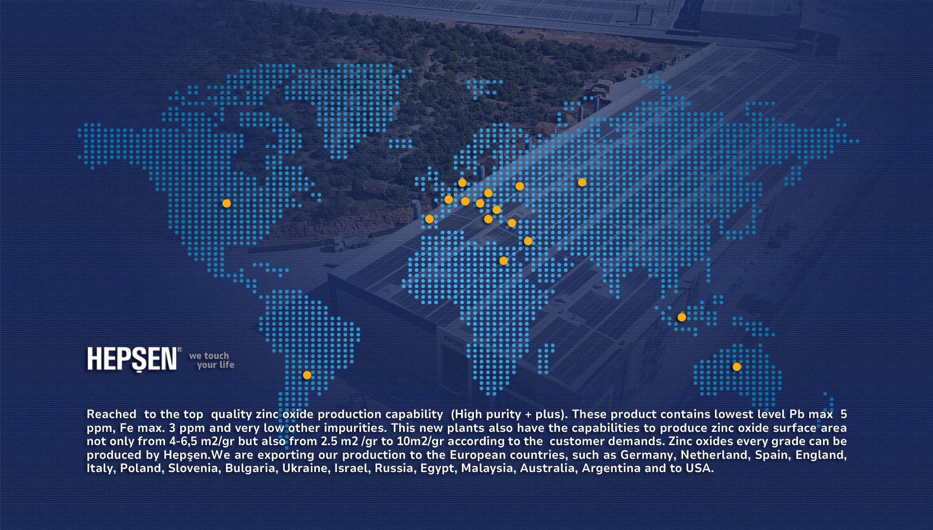 Hepşen is able to produce zinc oxide of any quality and our production is exported to European countries...